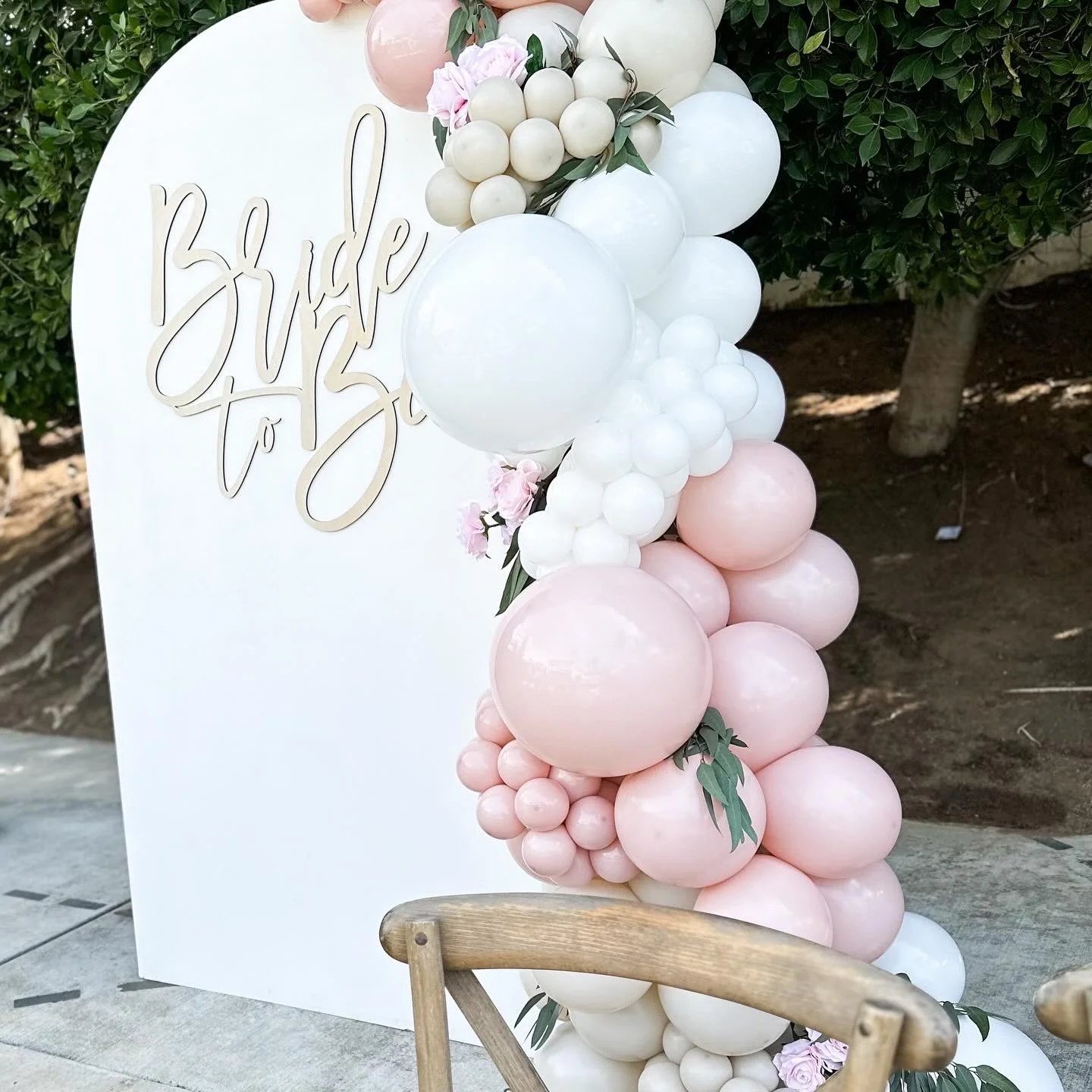 Bride-To-Be arch with 10 ft. of balloons + florals