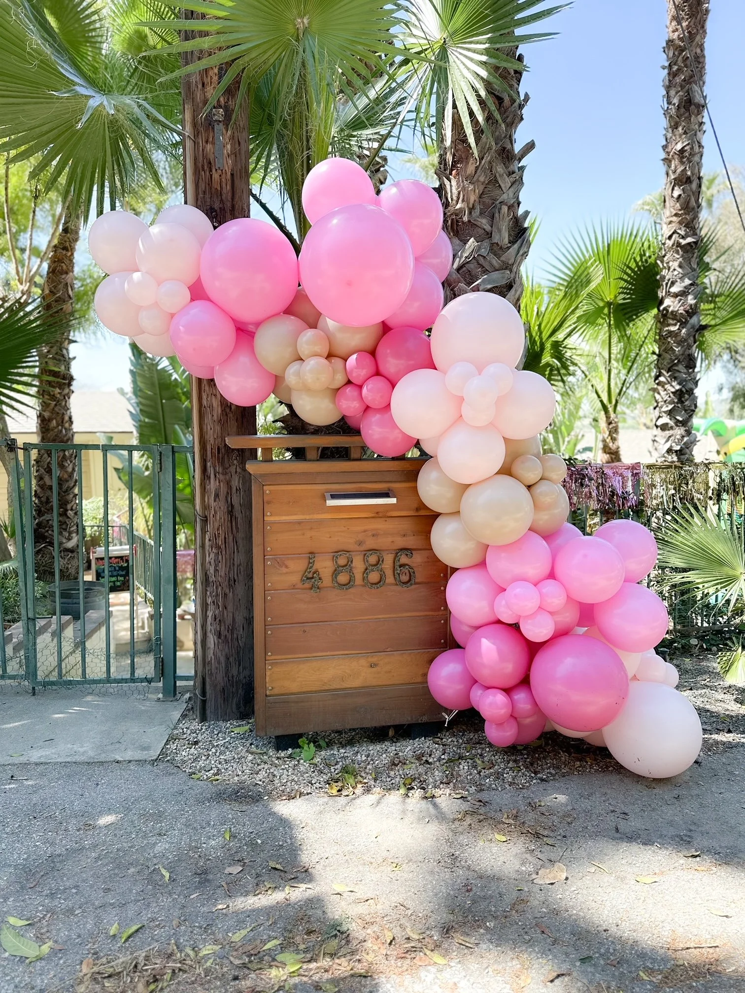 Bride to Be Setup with 16 ft. of balloons + ranunculus & clear bubble balloons